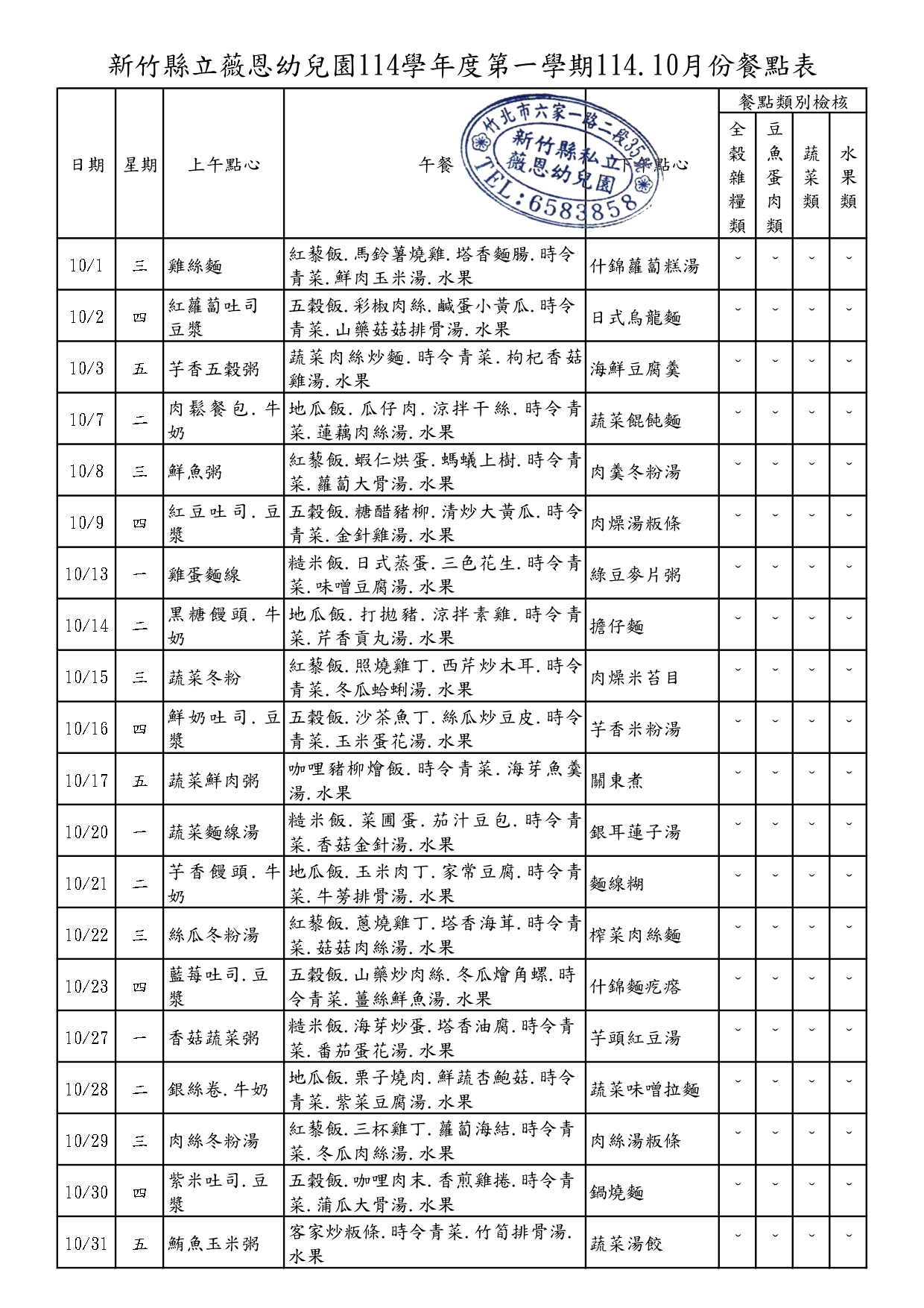 114.10月份營養餐點表