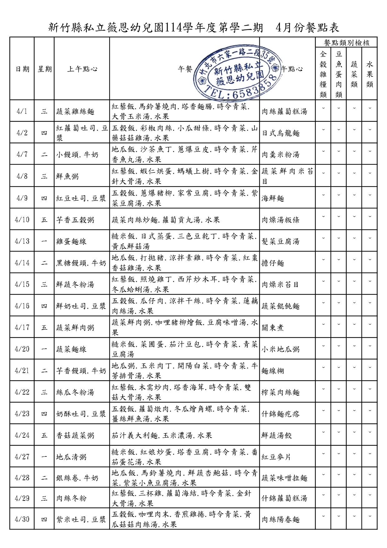 115.4月份營養餐點表
